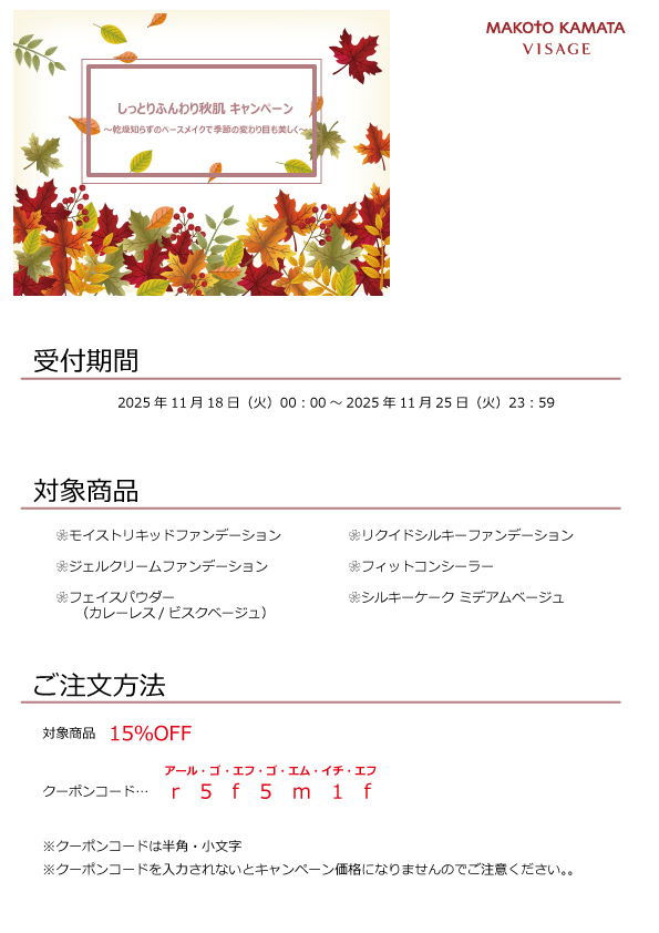 しっとりふんわり秋肌キャンペーンのお知らせ♪