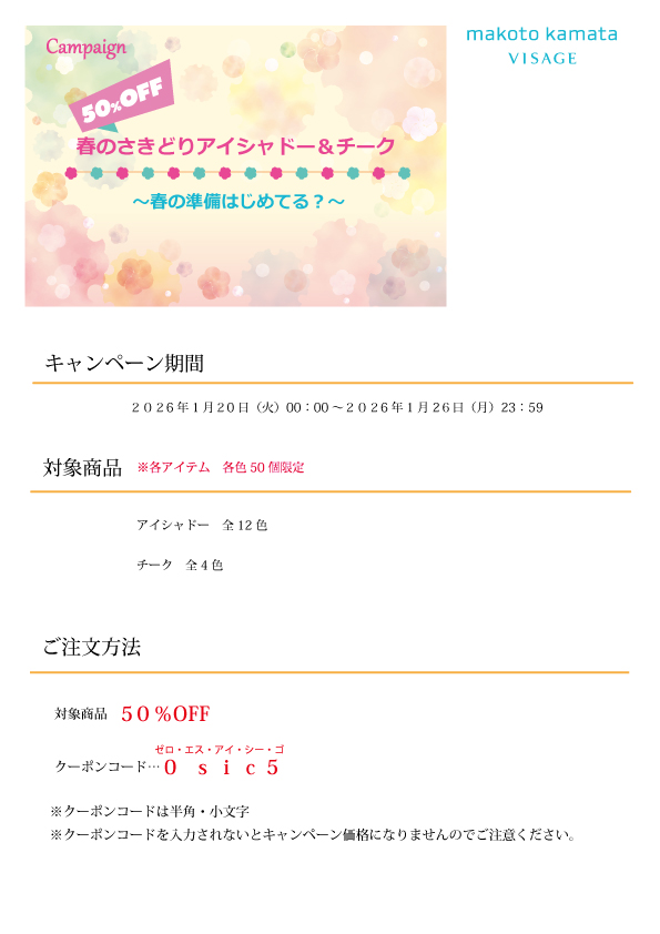 春のさきどり アイシャドー&チーク 50%OFF のお知らせ♪