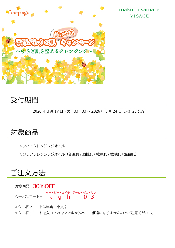 季節がわりの 肌リセット キャンペーンのお知らせ♪